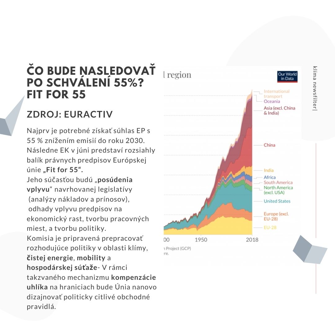 Dôraznejšie zníženie emisií, ku ktorému sa zaviazali členské štáty na decembrovom summite, bude tento rok určovať tón európskej politiky. Najprv bude potrebné získať súhlas Európskeho parlamentu s 55 percentným znížením emisií do roku 2030. To znamená, že europoslanci musia zľaviť zo svojich ambícií, keďže ešte na jeseň požadovali 60 percentnú redukciu emisií. Pripravuje sa tzv. “Fit for 55” . V rámci tohto balíka bude revidovaný takmer každý európsky zákon o energii a klíme, počnúc smernicou o obnoviteľnej energii až po právne predpisy ovplyvňujúce zdaňovanie energie. Nebude chýbať ani revízia systému obchodovania s emisiami.