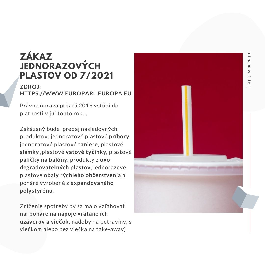 Prichádza zákaz jednorazových plastov – platný od 3.7.2021. V celej EÚ bude platiť zákaz predaja plastových výrobkov na jedno použitie, vrátane tanierov, príborov, slamiek či vatových tyčiniek. Odapdy tohto typu sú najčastejším alebo n ajviac viditeľným znečisťovateľom nášho prostredia. Su samozrejme aj iné – množstvo odpadu ale naše oko nevidí – nachádza sa totižto na dne morí, oceánov a riek. #plastovyodpad