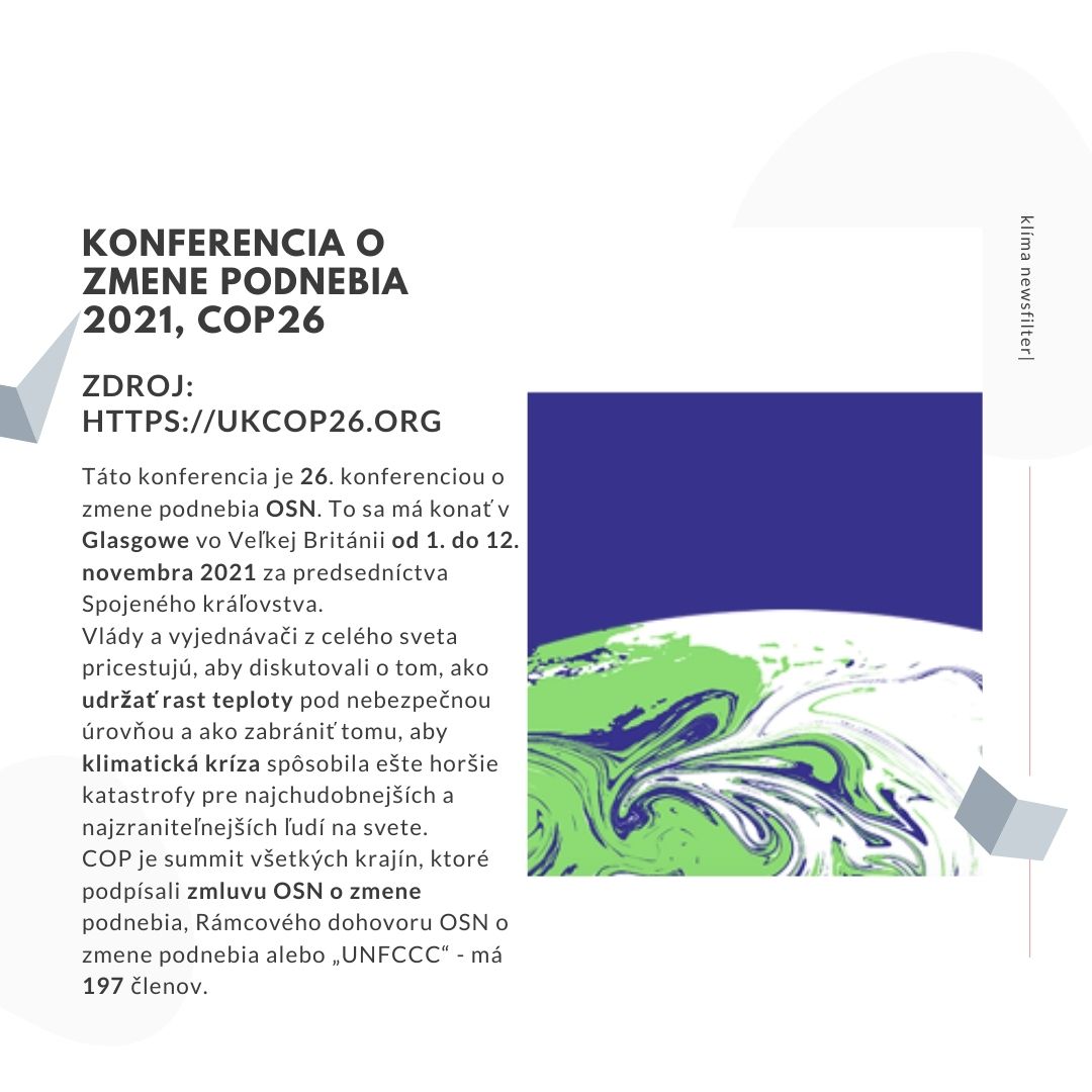 COP26 je 26ta klimatická konferencia OSN. To sa má konať v Glasgowe vo Veľkej Británii od 1. do 12. novembra 2021 za predsedníctva Spojeného kráľovstva.