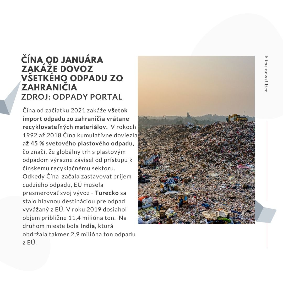 | Čína od januára 2021 zakáže dovoz všetkého odpadu zo zahraničia.