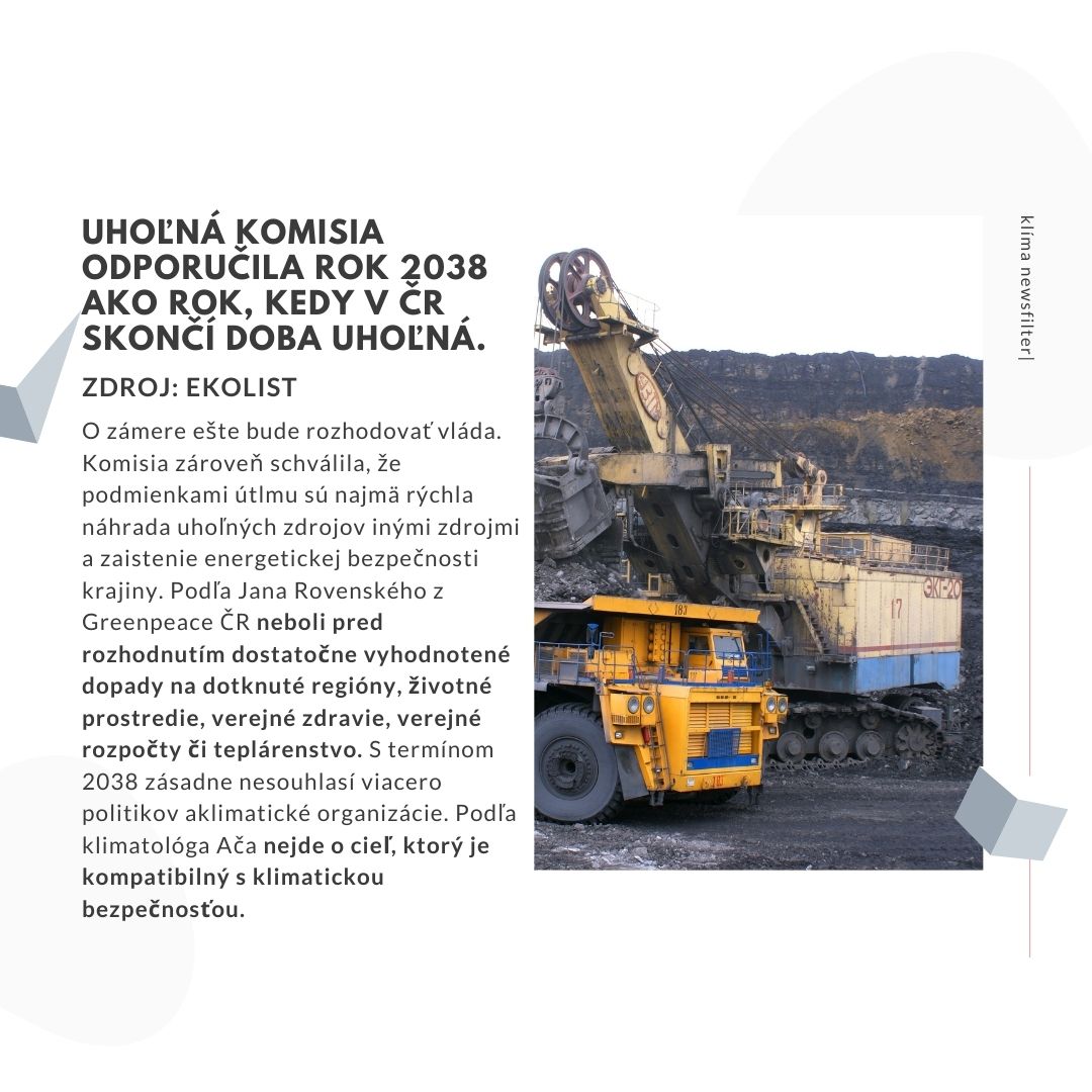 | Uhoľná komisia odporučila rok 2038 ako rok, kedy v ČR skončí doba uhoľná.