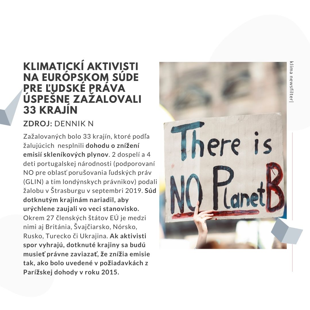 | Klimatickí aktivisti na Európskom súde pre ľudské práva úspešne zažalovali 33 krajín.