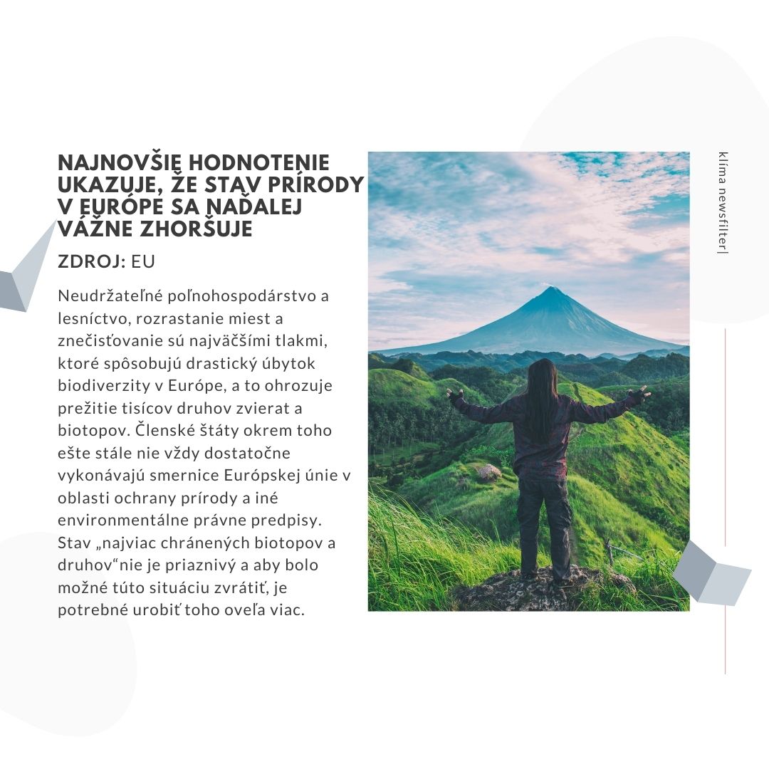 | Správa o stave prírody EU nie je pozitívna. Drastický úbytok biodiverzity v Európe, a to ohrozuje prežitie tisícov druhov zvierat a biotopov.