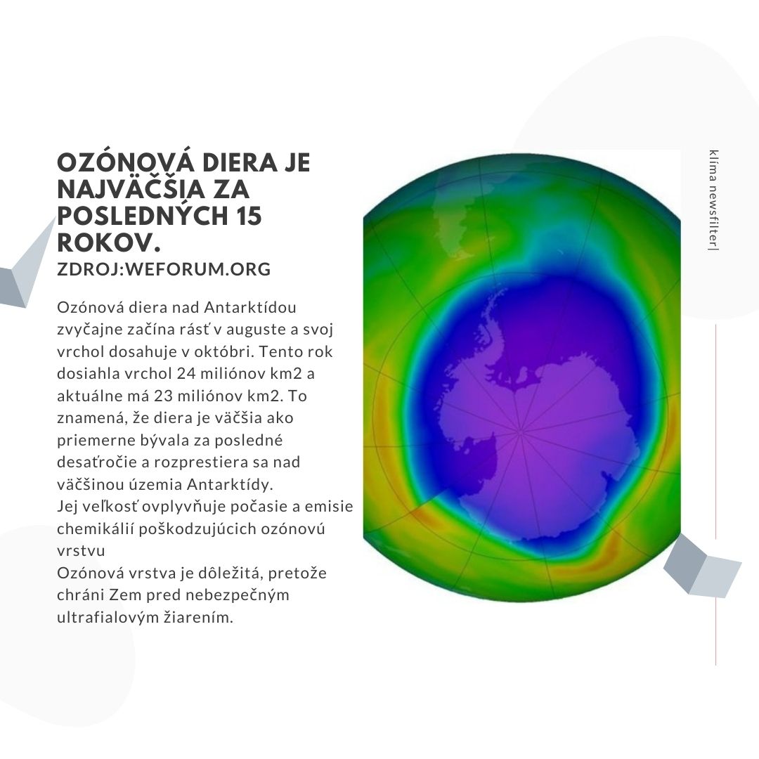 | Podľa Svetovej meteorologickej organizácie je diera ozónovej vrstvy nad Antarktídou jednou z najväčších a najhlbších za posledných 15 rokov.