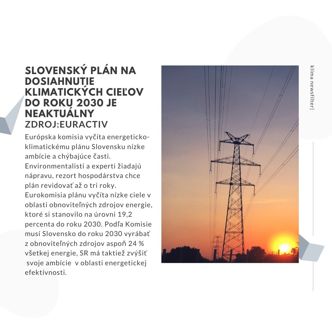 | 6. Slovenský plán na dosiahnutie klimatických cieľov do roku 2030 je neaktuálny a podľa Európskej Komisie málo ambiciózny.